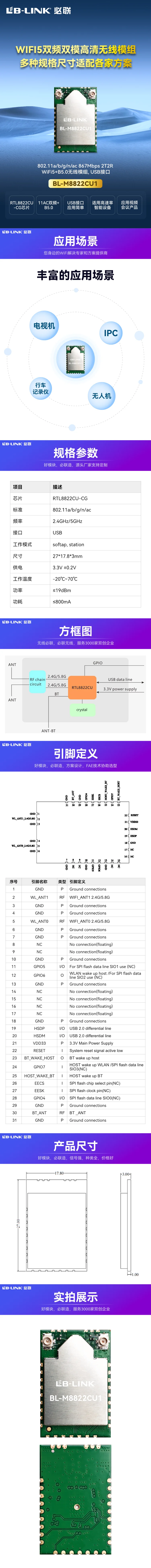 2T2R 802.11a/b/g/n/ac WiFi+B5.0模组